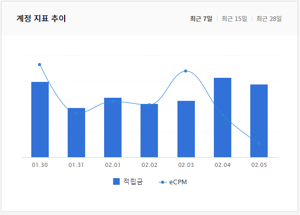 지난주(23.01.30~02.05) 카카오애드핏 수익 추이