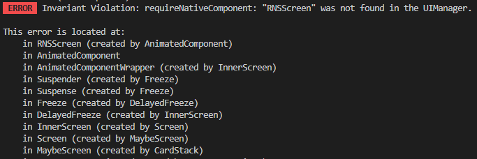 # Invariant Violation: requireNativeComponent: "RNSScreen" was not found in the UIManager