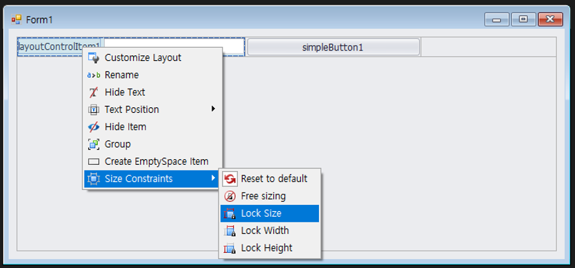 1. Form 생성 후 LayoutControl 을 Form위에 올린다.