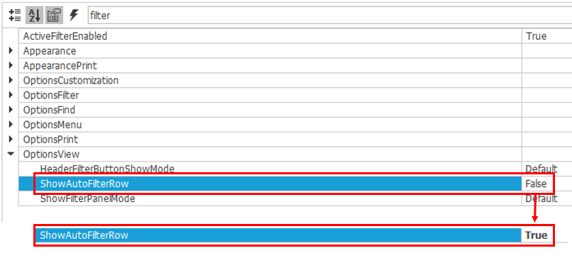 3. OptionsView -> ShowAutoFilterRow = true 선택