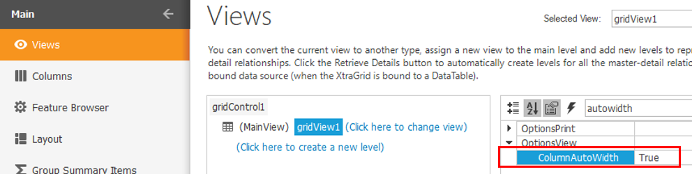 칼럼의 사이즈를 칼럼에 출력되는 문자 중 가장 긴 문자의 길이만큼 자동으로 크기 조절하기 위해서는 ColumnAutoWidth=false로 변경하고 GridControl.DataSource에 데이터 바인딩 후 GridView.BestFitColumns() 옵션을 추가하면 된다.