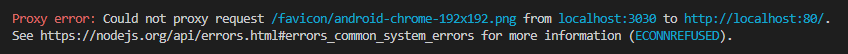Proxy error: Could not proxy request /favicon/android-chrome-192x192.png from localhost:3030 to http://localhost:80/.