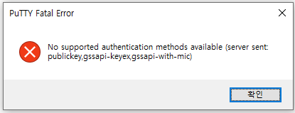 원격서버에서 putty 등으로 ssh key 인증을 필요로할 경우 아래처럼 에러 문구가 뜨면서 접속이 안됩니다. ssh 보안 인증에서 안되서 그런 건데요. 아래 절차를 따라서 진행하면 정상적으로 접속하실 수 있어요.