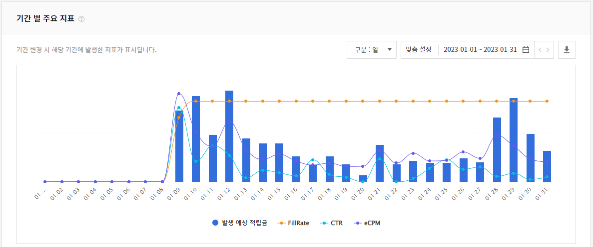 애드핏은 클릭률이 크게 중요한 것 같지 않다. 클릭이 0회 였던 날이 클릭이 10회 있었던 날보다 수익이 좋은 경우도 있기 때문이다. 그런데 또 어떤 날은 광고노출수는 많은데 클릭이 0회여서 그런지 수익이 크게 줄었던 날도 있다. 애드핏을 2달 정도 사용해 보니 그냥 대중없다는 게 결론이다.