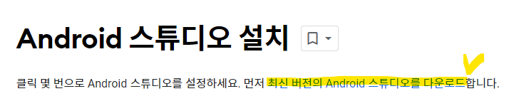 "구글에서 안드로이드 스튜디오 설치" 라고 검색하면 나오는 아래 사이트에 접속한다.