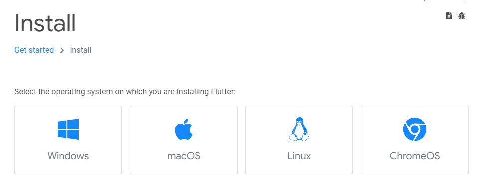 구글에서 flutter install을 치면 가장 상단에 나오는 사이트에 접속한다.